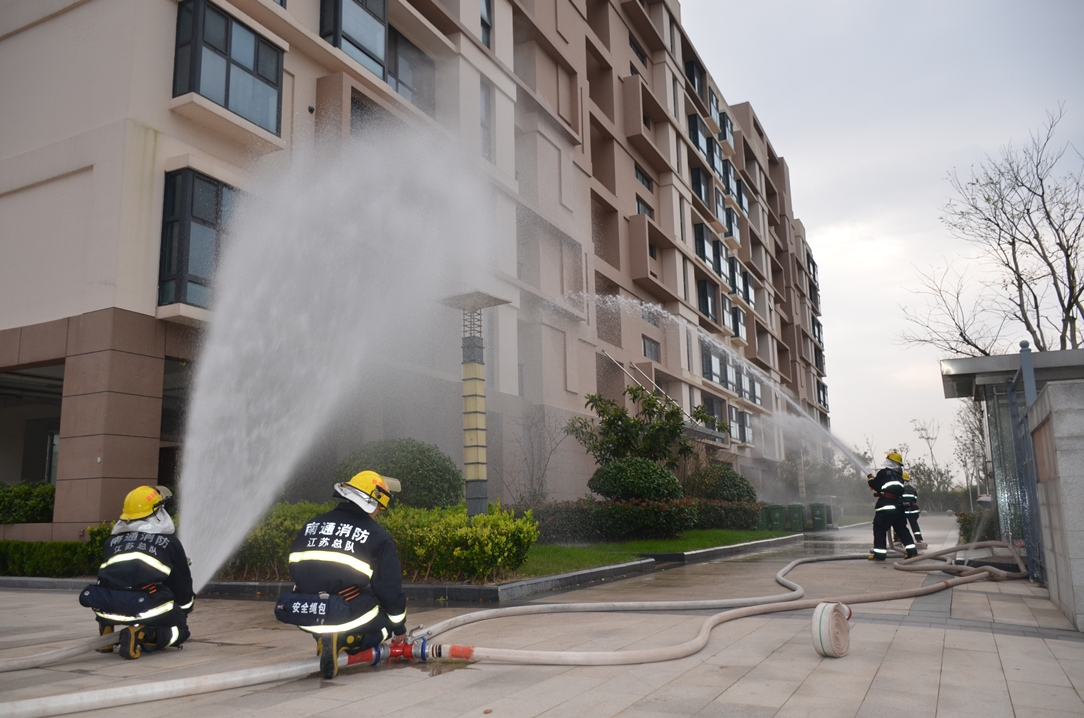 為了提高在城師生的安全意識以及應(yīng)急逃生技能, “11.9消防安全日”之際,通州灣科創(chuàng)城、示范區(qū)消防大隊和蘇州東吳物業(yè)管理有限公司聯(lián)合江蘇商貿(mào)學院1500多名師生在A03公寓樓開展消防演練。 11月7日16時,隨著總指揮演練指令下達后,消防演習煙霧彈的點燃和警報的拉響,A03地塊1、2、3、4、5、6號公寓樓里的商貿(mào)師生,按照預(yù)定路線,用毛巾捂住口鼻,迅速有序地疏散到集結(jié)點,用時4分40秒,學生會負責清點人數(shù),確認無人受傷后,向總指揮匯報集合情況。消防大隊接警后,專職消防員駕駛消防車火速趕到,六名消防員立即展開救援,現(xiàn)場展示水槍滅火等動作。