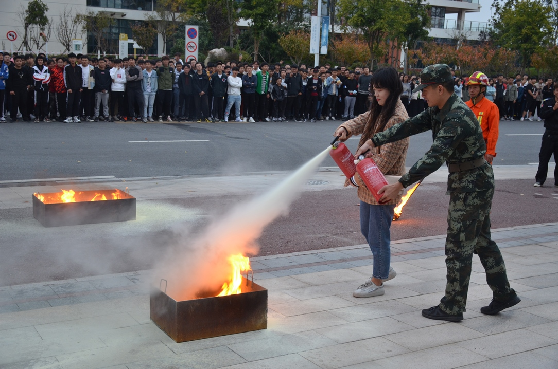 總指揮集合隊伍后,張偉中隊長向師生講解疏散要領(lǐng)、自救技能、逃生注意事項以及滅火器的正確使用方法;消防大隊和東吳保安部隨后布置油盆滅火實操演練,組織60余名師生體現(xiàn)滅火操作,綜治辦對演練活動進行點評;科創(chuàng)城公司副總經(jīng)理尤麗華和商貿(mào)學工處處長施永豐分別講話。