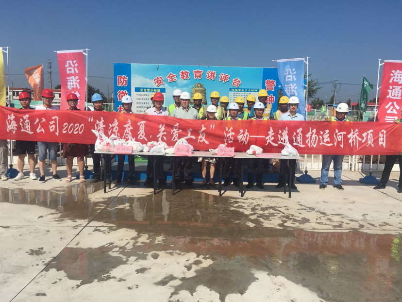 慰問(wèn)過(guò)程中,海通公司副董事長(zhǎng)孟曉楠強(qiáng)調(diào):希望施工單位務(wù)必要做好防暑降溫工作,科學(xué)管理,合理規(guī)劃工人在室外高溫作業(yè)時(shí)間,注意勞逸結(jié)合,注意防暑降溫,防止中暑引發(fā)安全事故。在保證安全施工、確保施工人員身體健康的前提下,繼續(xù)加強(qiáng)工程安全和質(zhì)量意識(shí),保質(zhì)保量完成各階段目標(biāo)。