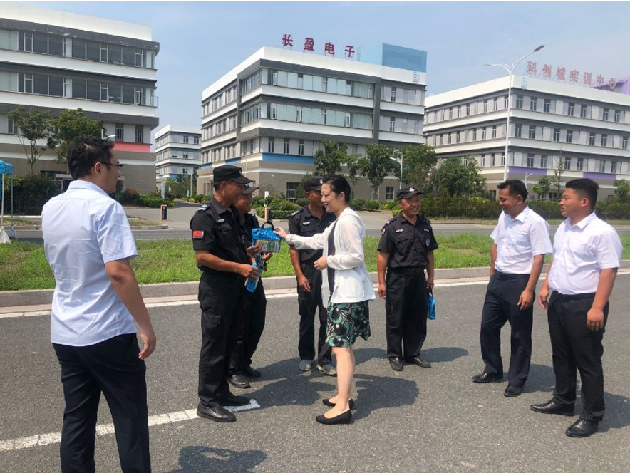 本次高溫慰問(wèn)活動(dòng)由產(chǎn)業(yè)公司副總經(jīng)理尤麗華帶隊(duì),深入工作一線,分別向教學(xué)區(qū)、產(chǎn)業(yè)區(qū)及十里藍(lán)院一線保安、保潔等工作人員送上防暑降溫慰問(wèn)品。