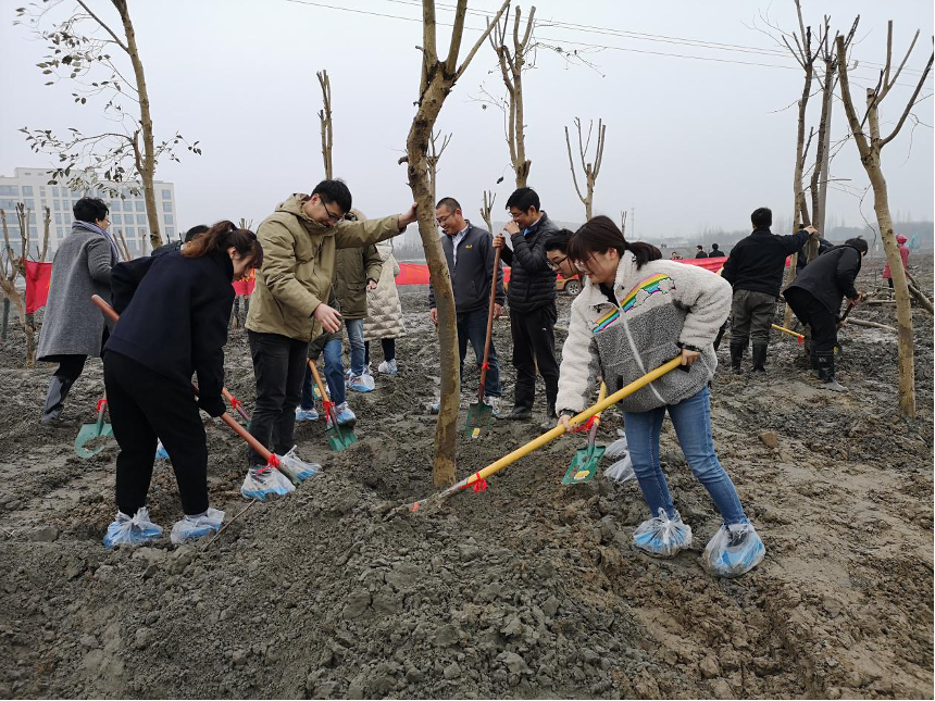 黨員同志們分工協(xié)作,揮鍬鏟土、扶苗填坑,齊心協(xié)力讓數(shù)十株樹苗在高鐵新城“安家落戶”,一排排栽好的樹苗挺立在和煦春風(fēng)里,煥發(fā)勃勃生機(jī)。