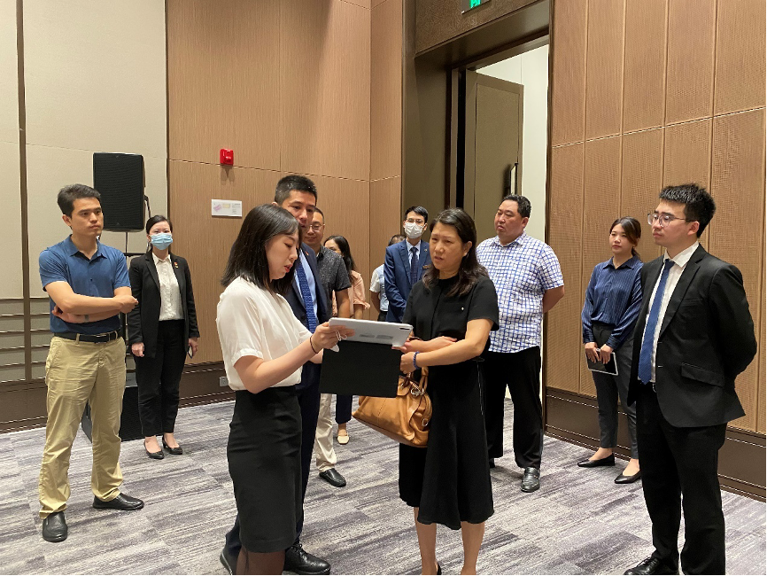 首先,陸雁一行在工作人員的帶領(lǐng)下先后實地參觀考察了由北辰會展集團負責(zé)運營的國際會展中心、國際會議中心和南通五洲皇冠酒店的空間特色及建設(shè)運營情況,實地學(xué)習(xí)兩中心一酒店的經(jīng)驗做法。